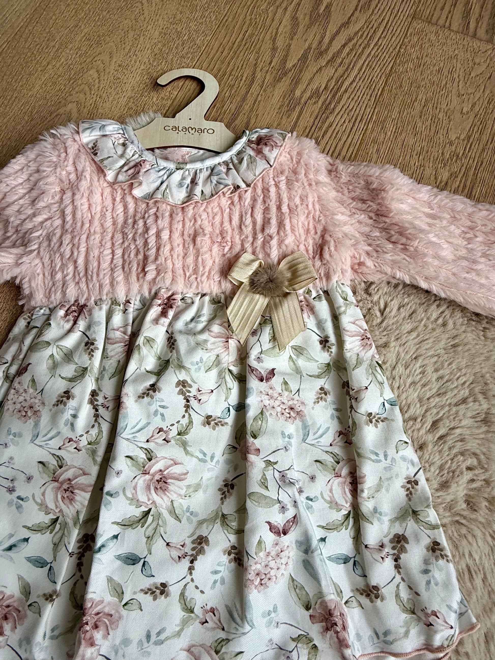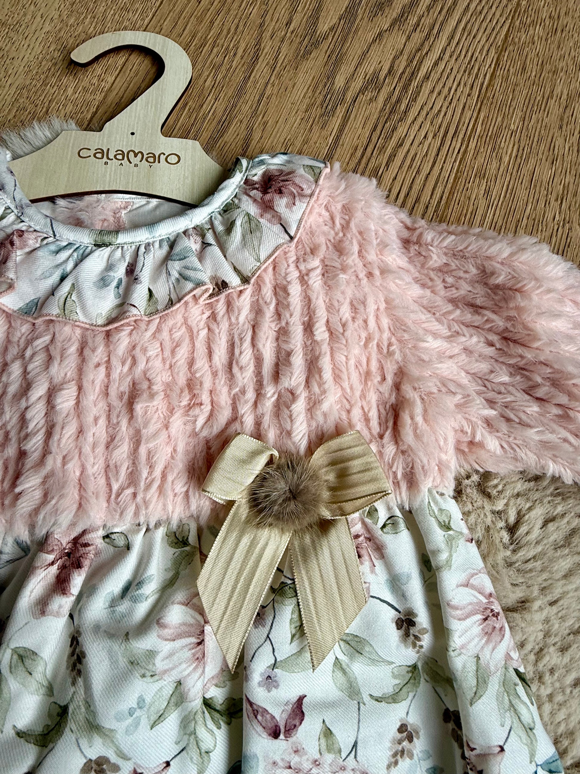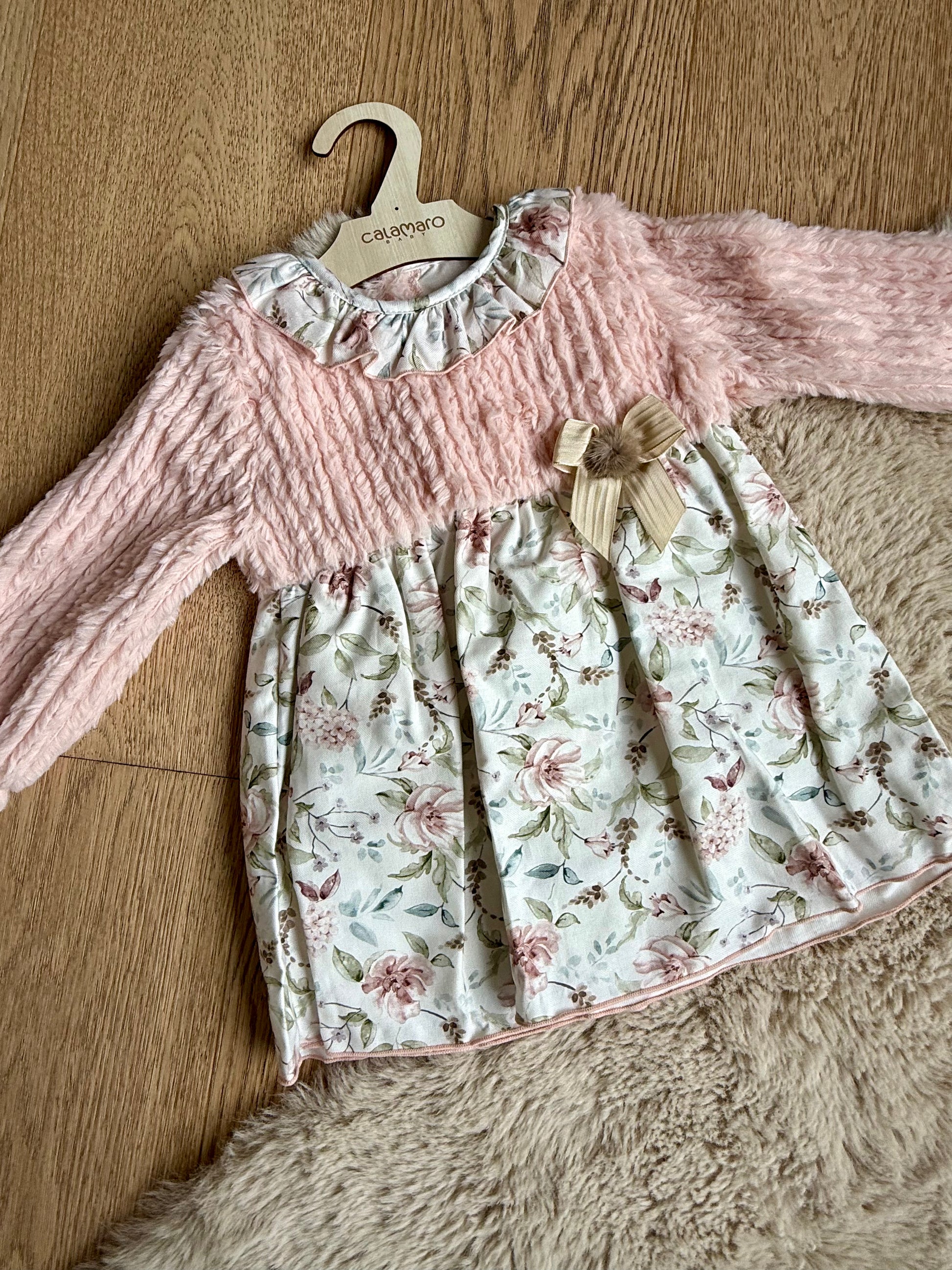 Laat je kleine meid stralen in dit betoverende fluffy kleedje! Het jurkje is gemaakt van een heerlijk zacht materiaal dat comfort en warmte biedt, perfect voor koelere dagen. De romantische bloemenprint geeft het geheel een speelse en vrolijke uitstraling, terwijl de sierlijke strik zorgt voor een elegante finishing touch.